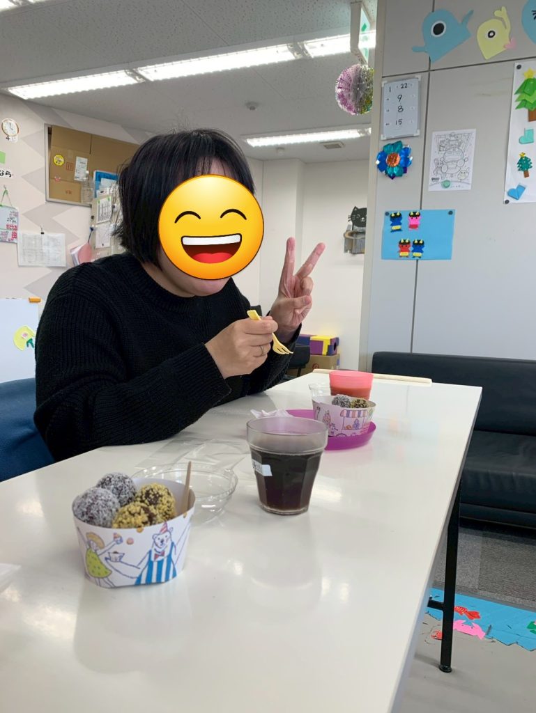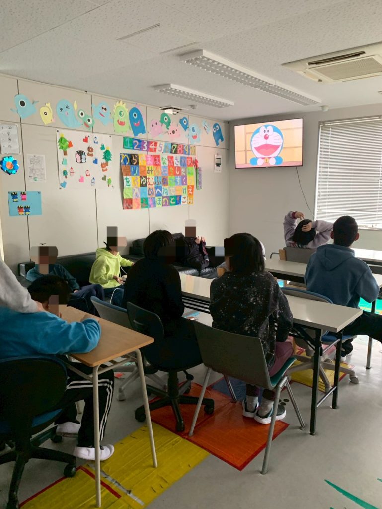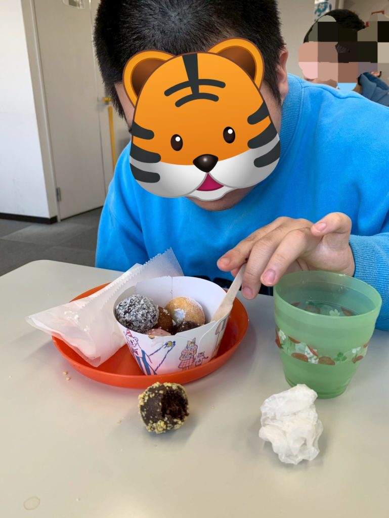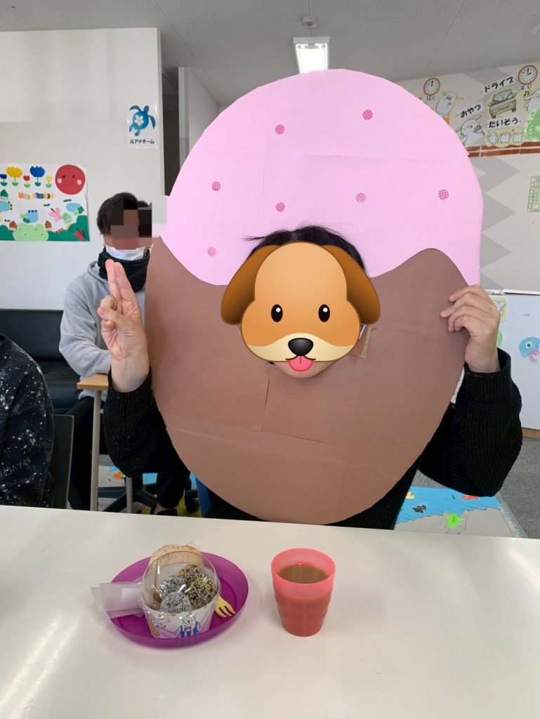 1月のイベント🥳 今月の生活介護おーじーのイベントは、 ドラえもんの映画鑑賞して、 ミスタードーナツ🍩を食べました😋🍴 部屋を暗くして鑑賞しましたよ(о´∀`о) ドーナツ🍩のパネルで気分を盛り上げ⤴️⤴️ 楽しいひとときを過ごしましたヽ(´▽`)ノ